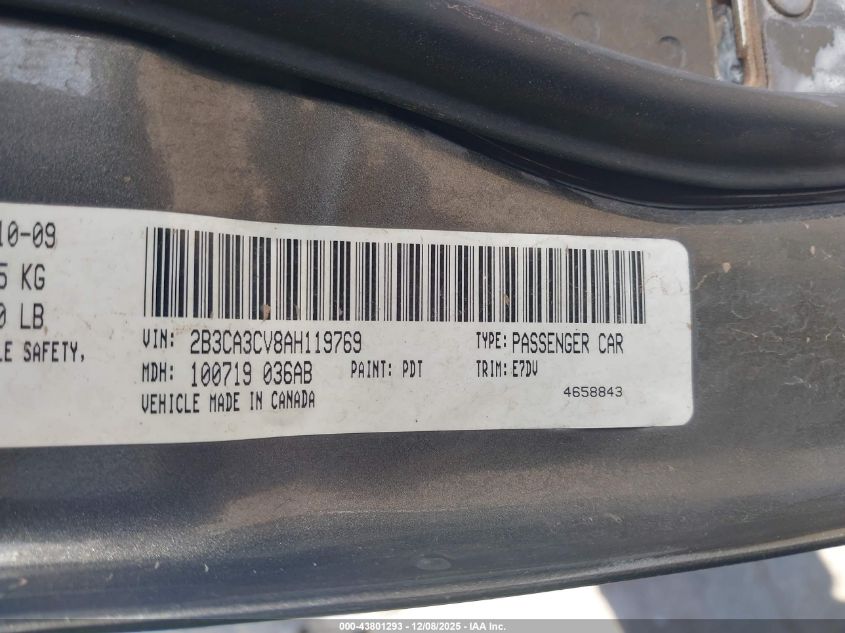 2010 DODGE CHARGER 2010 року Бензин, 3.5, Задній привід, vin - 2B3CA3CV8AH119769 з США