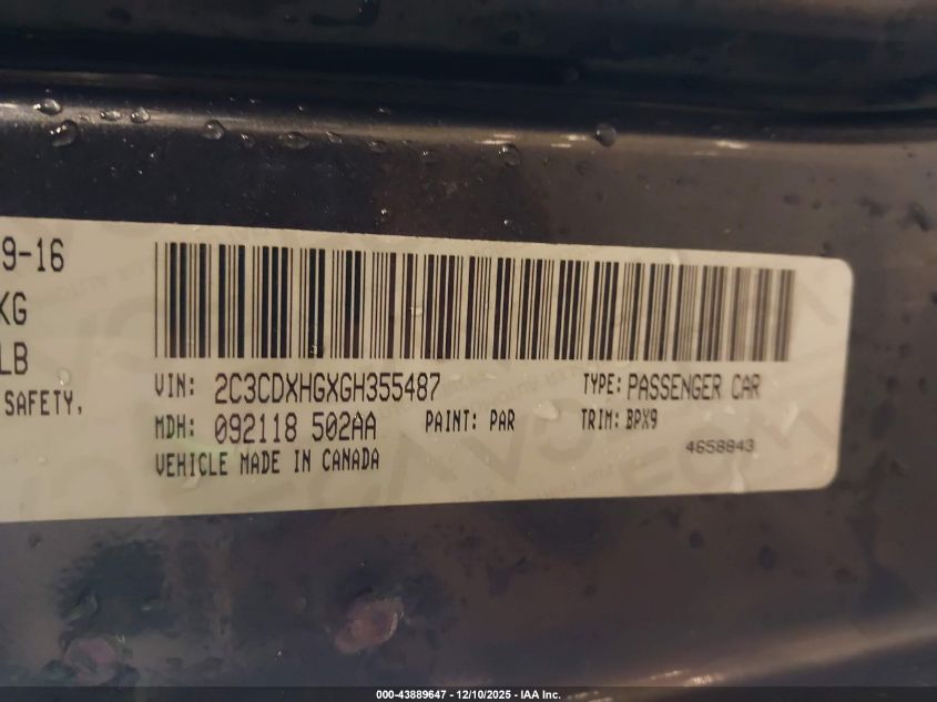 2016 DODGE CHARGER 2016 року Бензин, 3.6, Задній привід, vin - 2C3CDXHGXGH355487 з США