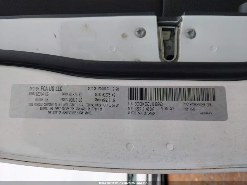 2020 DODGE CHARGER 2020 року Бензин, 3.6, Задній привід, vin - 2C3CDXBG6LH138263 з США