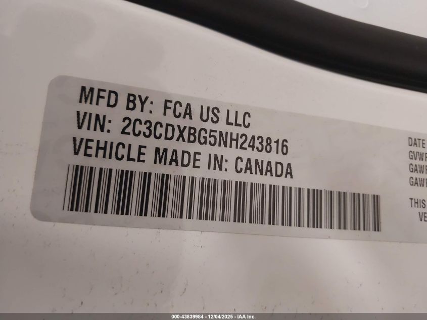 2022 DODGE CHARGER 2022 року Бензин, 3.6, Задній привід, vin - 2C3CDXBG5NH243816 з США