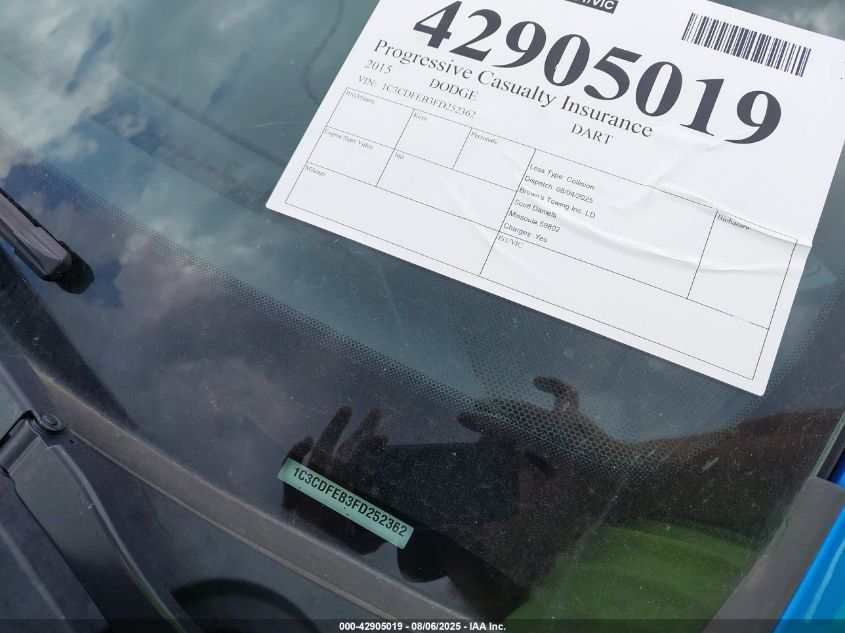 2015 DODGE DART 2015 року Бензин, 2.4, Передній привід, vin - 1C3CDFEB3FD252362 з США