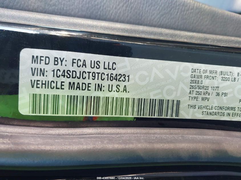 2026 DODGE DURANGO 2026 року Бензин, 5.7, Повний привід, vin - 1C4SDJCT9TC164231 з США