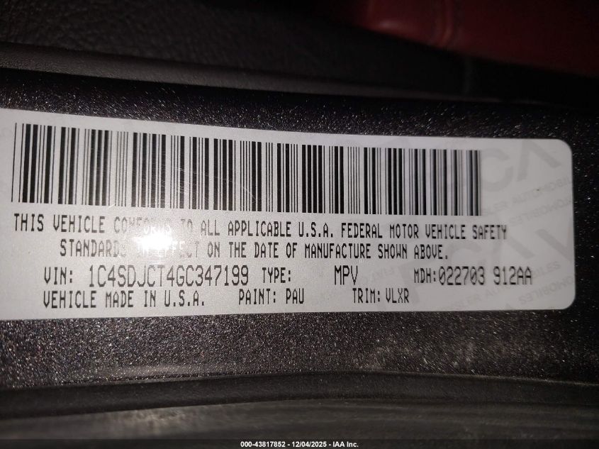 2016 DODGE DURANGO 2016 року Бензин, 5.7, Повний привід, vin - 1C4SDJCT4GC347199 з США