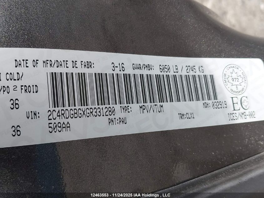 2016 DODGE GRAND CARAVAN 2016 року , , Передній привід, vin - 2C4RDGBGXGR331280 з США