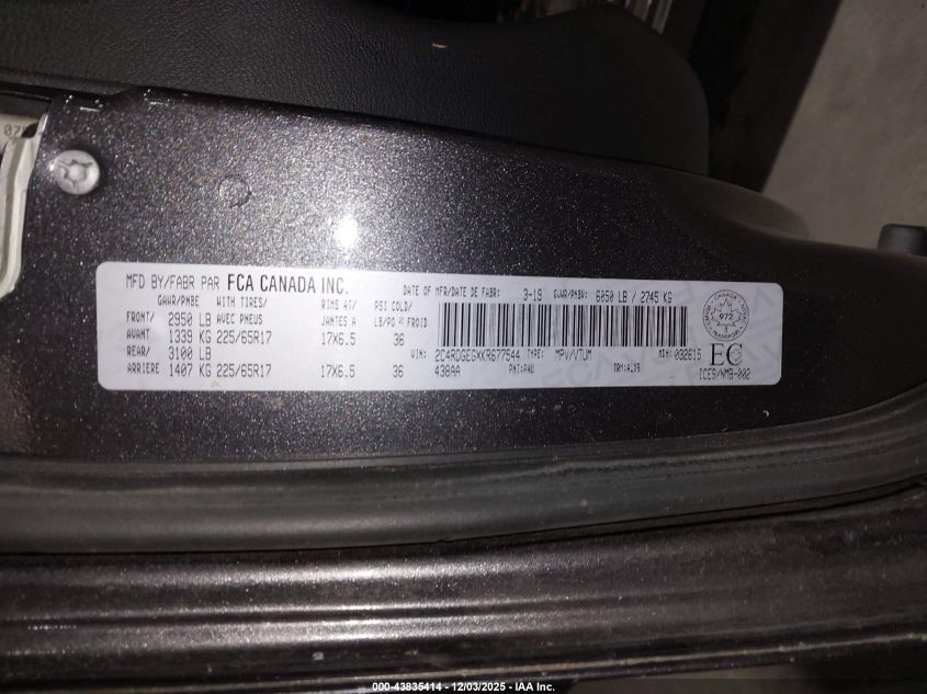 2019 DODGE GRAND CARAVAN 2019 року Бензин, 3.6, Передній привід, vin - 2C4RDGEGXKR677544 з США