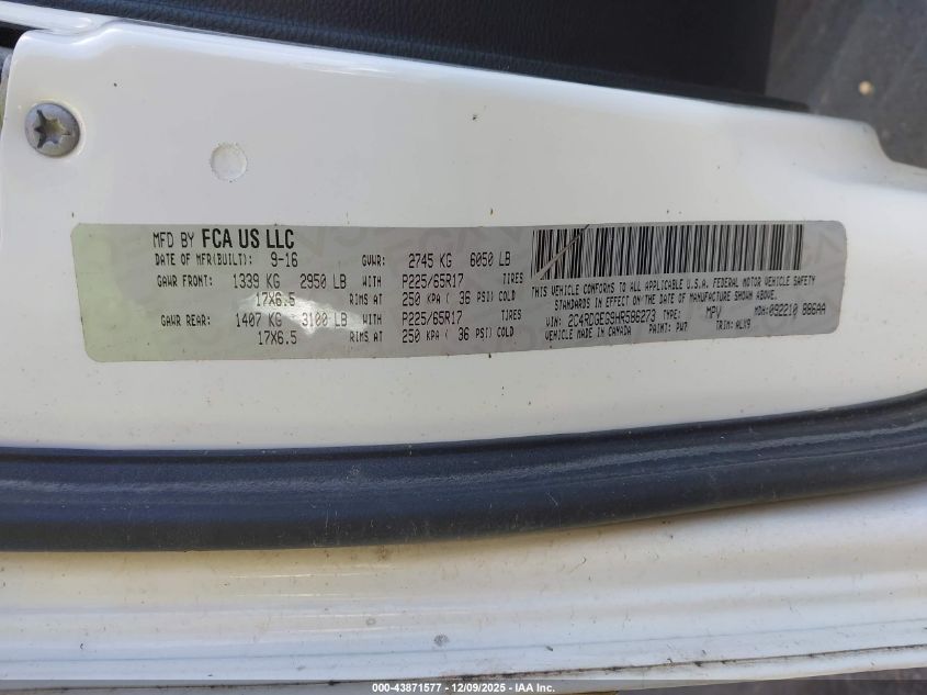 2017 DODGE GRAND CARAVAN 2017 року Бензин, 3.6, Передній привід, vin - 2C4RDGEG9HR586273 з США