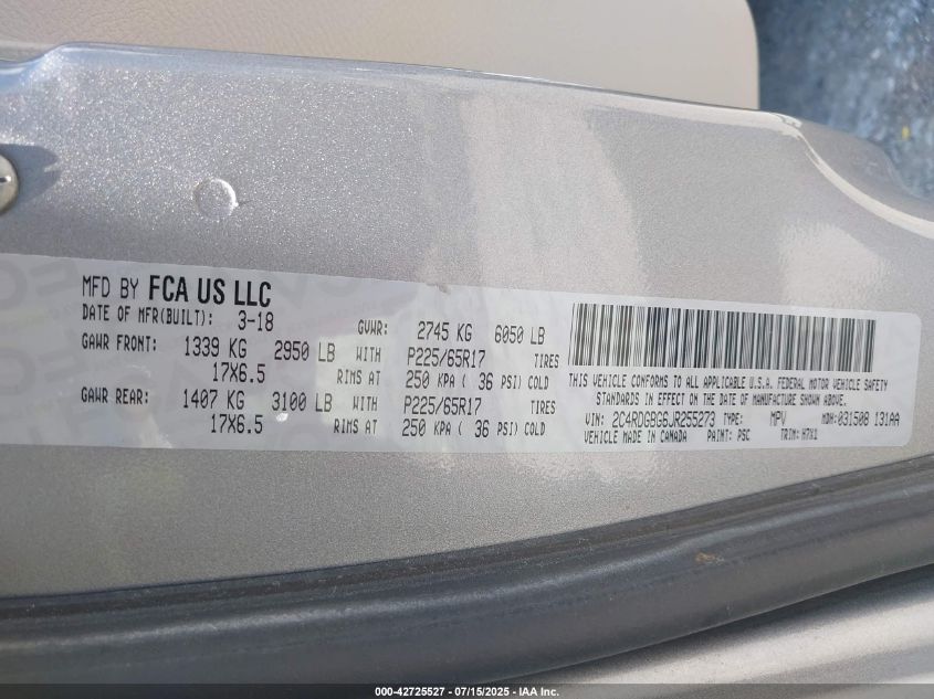 2018 DODGE GRAND CARAVAN 2018 року Бензин, 3.6, Передній привід, vin - 2C4RDGBG6JR255273 з США