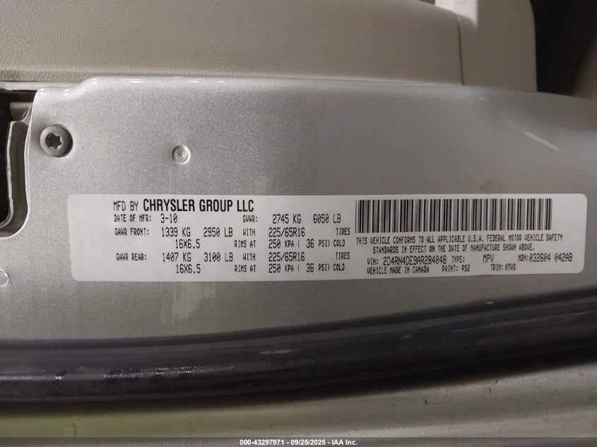 2010 DODGE GRAND CARAVAN 2010 року Бензин, 3.3, Передній привід, vin - 2D4RN4DE9AR284048 з США
