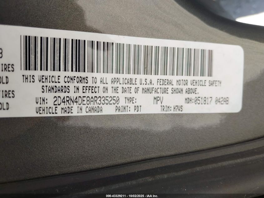 2010 DODGE GRAND CARAVAN 2010 року Бензин, 3.3, Передній привід, vin - 2D4RN4DE8AR335250 з США