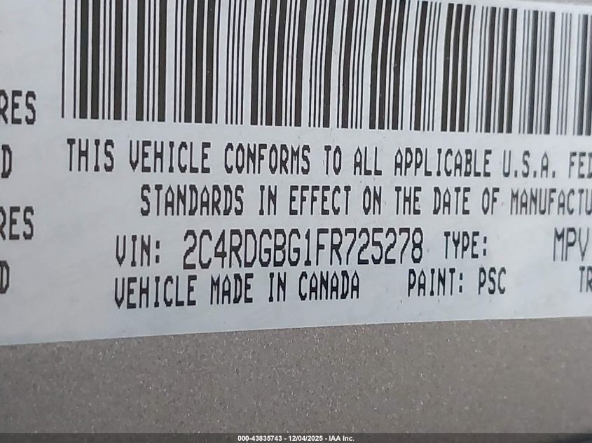 2015 DODGE GRAND CARAVAN 2015 року Бензин, 3.6, Передній привід, vin - 2C4RDGBG1FR725278 з США
