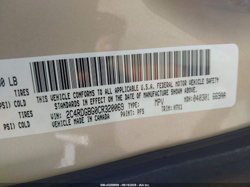 2012 DODGE GRAND CARAVAN 2012 року Бензин, 3.6, Передній привід, vin - 2C4RDGBG0CR320069 з США