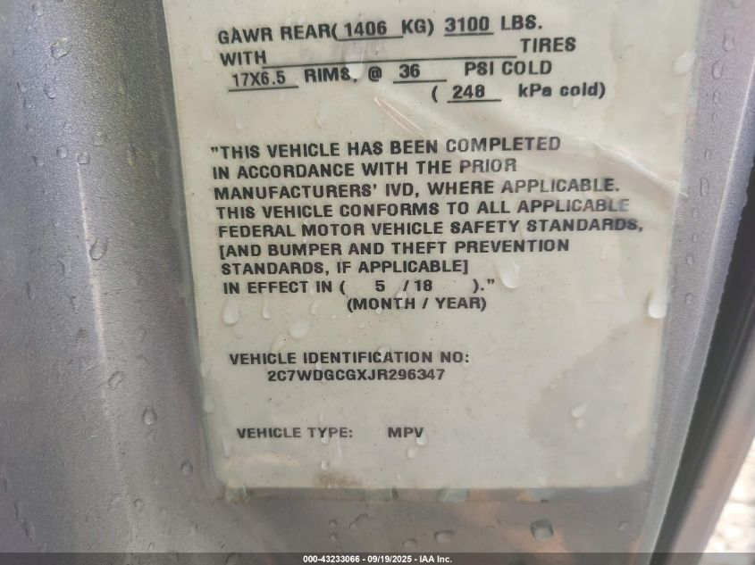 2018 DODGE GRAND CARAVAN 2018 року Бензин, 3.6, Передній привід, vin - 2C7WDGCGXJR296347 з США