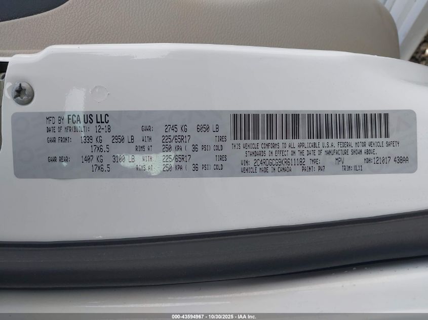 2019 DODGE GRAND CARAVAN 2019 року Бензин, 3.6, Передній привід, vin - 2C4RDGCG9KR611182 з США