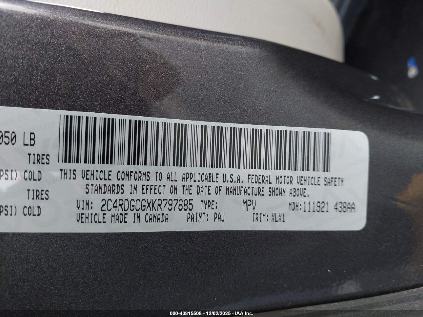 2019 DODGE GRAND CARAVAN 2019 року Бензин, 3.6, Передній привід, vin - 2C4RDGCGXKR797685 з США