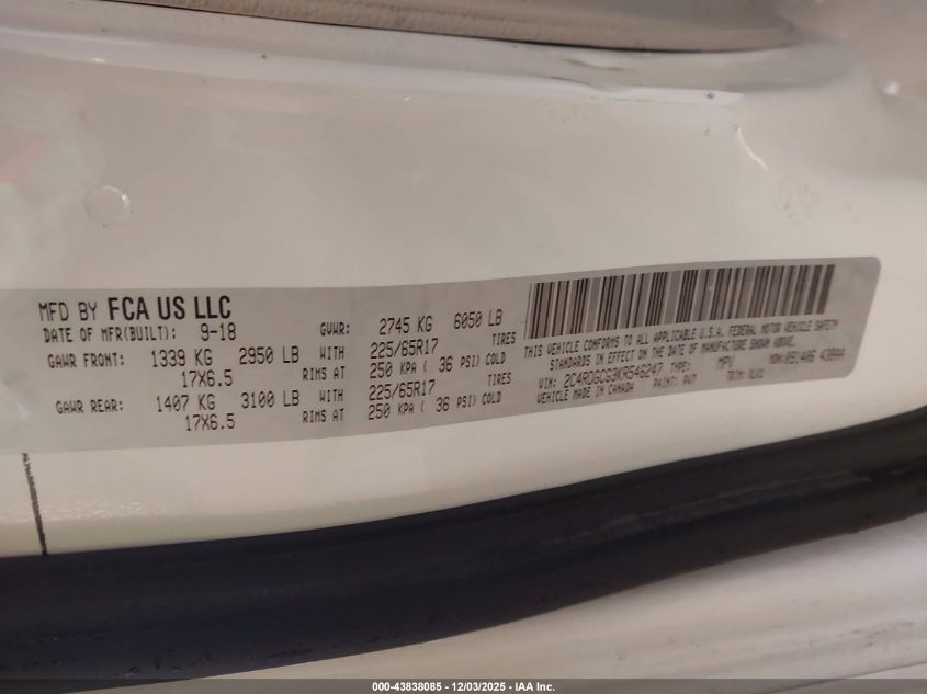 2019 DODGE GRAND CARAVAN 2019 року Бензин, 3.6, Передній привід, vin - 2C4RDGCG3KR546247 з США