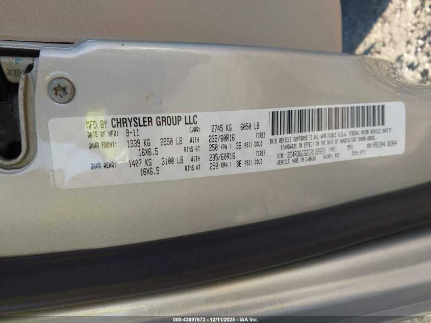 2012 DODGE GRAND CARAVAN 2012 року Бензин, 3.6, Передній привід, vin - 2C4RDGCG2CR122821 з США
