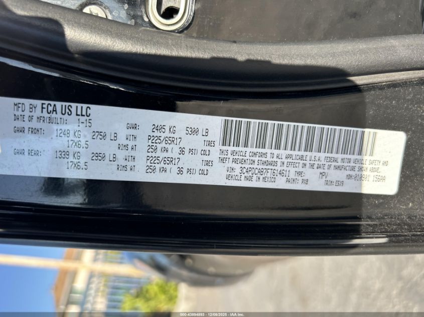 2015 DODGE JOURNEY 2015 року Бензин, 2.4, Передній привід, vin - 3C4PDCAB7FT614611 з США