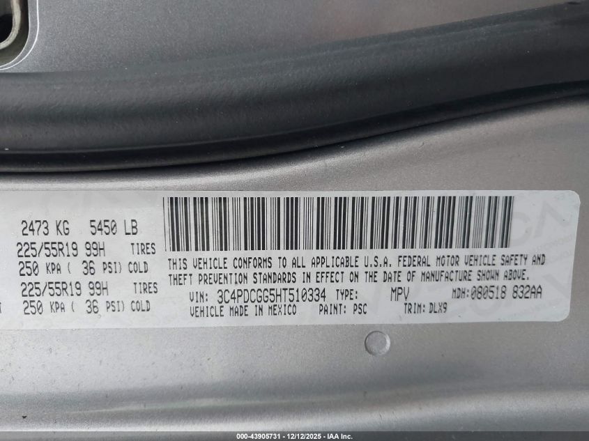 2017 DODGE JOURNEY 2017 року Бензин, 3.6, Передній привід, vin - 3C4PDCGG5HT510334 з США