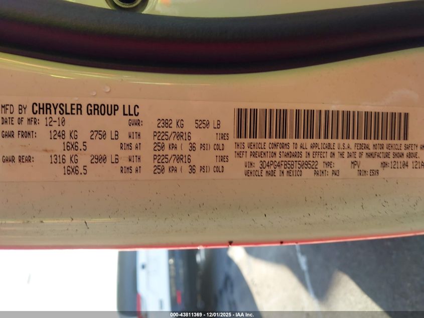 2011 DODGE JOURNEY 2011 року Бензин, 2.4, Передній привід, vin - 3D4PG4FB5BT509522 з США