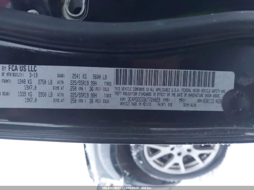 2019 DODGE JOURNEY 2019 року Бензин, 3.6, Повний привід, vin - 3C4PDDEG9KT720029 з США