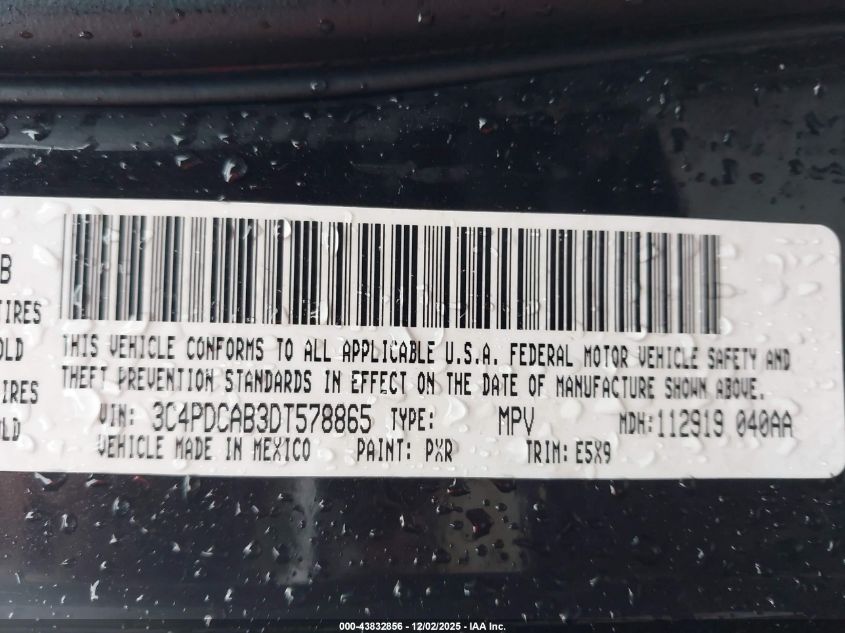 Колір ЧорнийЦиліндри 4Привід Передній привідVIN 3C4PDCAB3DT578865Стан СтаціонарноУшкодження Передня або задня AutoRIA