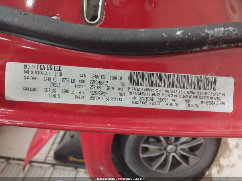 Колір ЧервонийЦиліндри 4Привід Передній привідVIN 3C4PDCAB1JT310361Стан Заводиться та їде (перевірено)Ушкодження Передня або задня AutoRIA