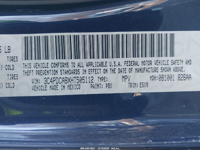 Колір Циліндри 4Привід Передній привідVIN 3C4PDCABXHT505112Стан НевідомоУшкодження Невідомо AutoRIA