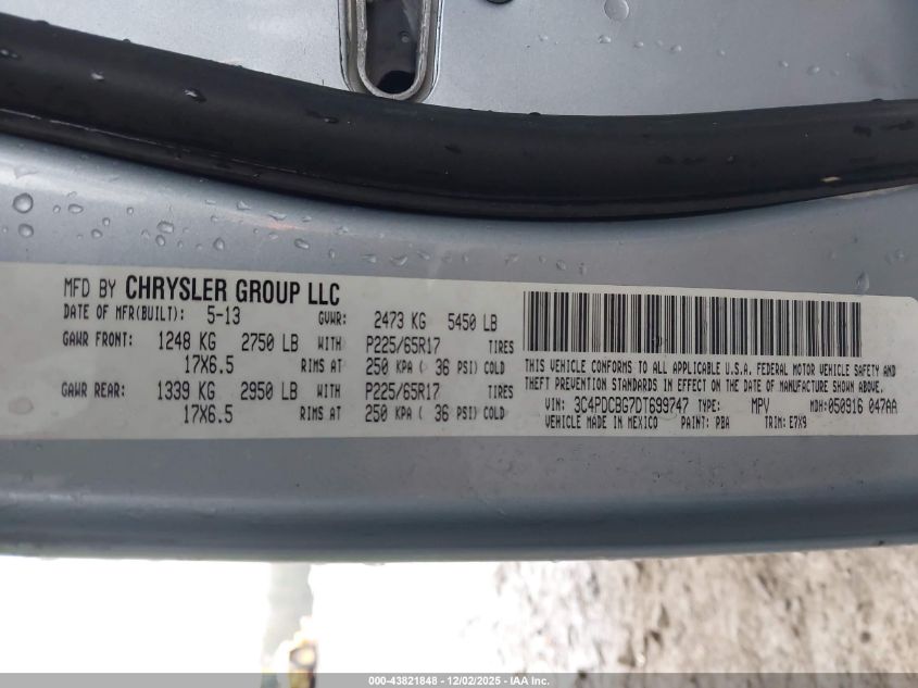 2013 DODGE JOURNEY 2013 року Бензин, 3.6, Передній привід, vin - 3C4PDCBG7DT699747 з США