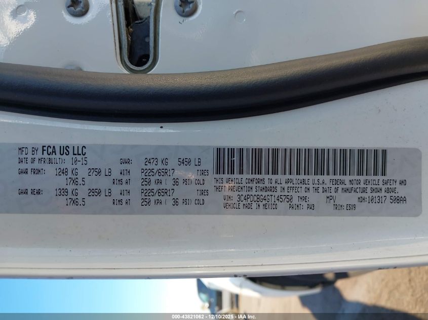 2016 DODGE JOURNEY 2016 року Бензин, 3.6, Передній привід, vin - 3C4PDCBG4GT145750 з США