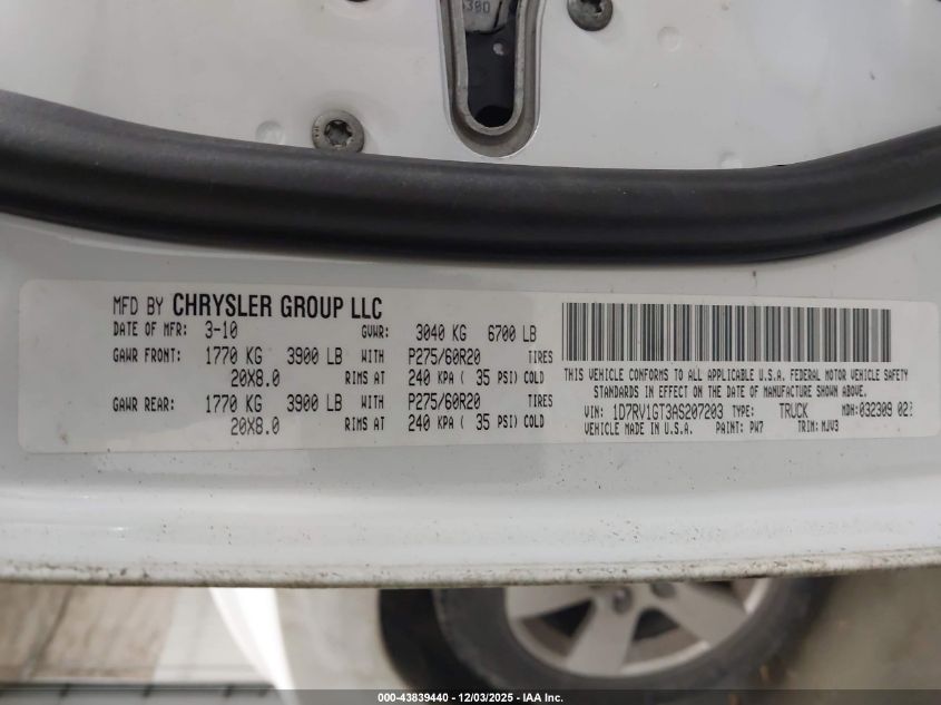2010 DODGE RAM 1500 2010 року Бензин, 5.7, Повний привід, vin - 1D7RV1GT3AS207203 з США