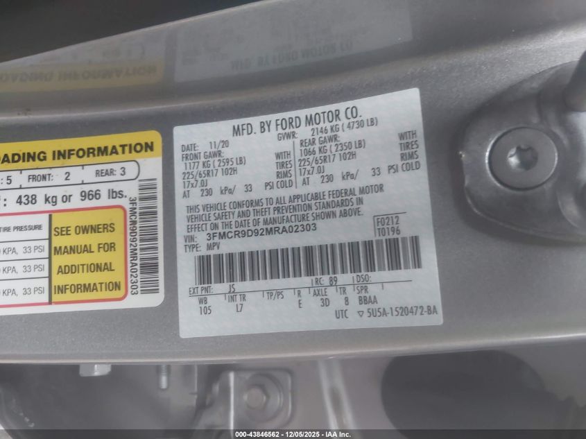Колір СрібнийЦиліндри 4Привід Повний привідVIN 3FMCR9D92MRA02303Стан Заводиться та їде (перевірено)Ушкодження Передня або задня AutoRIA