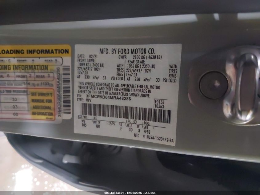 2021 FORD BRONCO SPORT 2021 року Бензин, 1.5, Повний привід, vin - 3FMCR9B64MRA48286 з США
