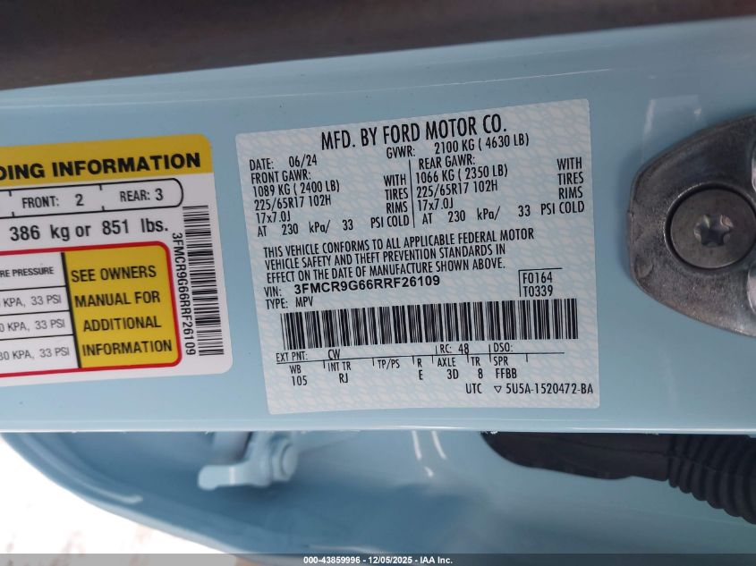 2024 FORD BRONCO SPORT 2024 року Бензин, 1.5, Повний привід, vin - 3FMCR9G66RRF26109 з США