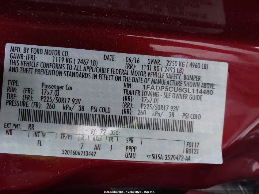 Колір ЧервонийЦиліндри 4Привід Передній привідVIN 1FADP5CU6GL114480Стан СтаціонарноУшкодження Передня або задня AutoRIA