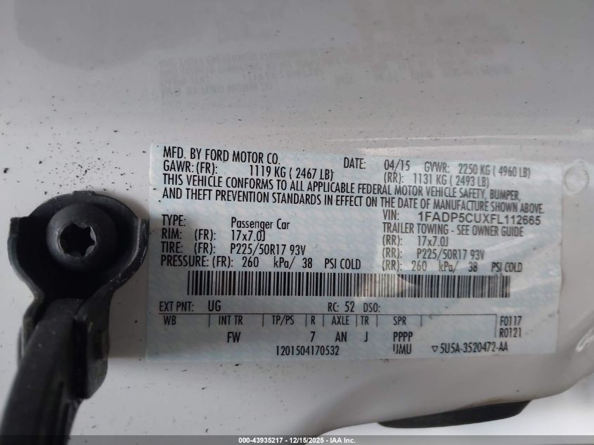 Колір БілийЦиліндри 4Привід Передній привідVIN 1FADP5CUXFL112665Стан СтаціонарноУшкодження Невідомо AutoRIA