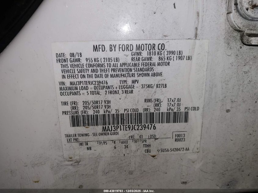 2018 FORD ECOSPORT 2018 року Бензин, 1.0, Передній привід, vin - MAJ3P1TE9JC239476 з США