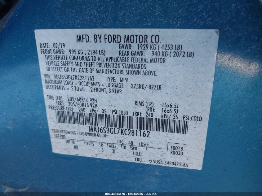 2019 FORD ECOSPORT 2019 року Бензин, 2.0, Повний привід, vin - MAJ6S3GL7KC281162 з США