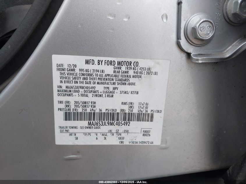 2021 FORD ECOSPORT 2021 року Бензин, 2.0, Повний привід, vin - MAJ6S3JL9MC405492 з США