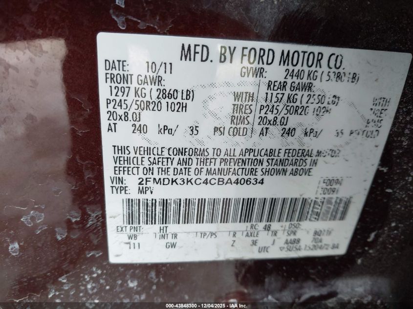 2012 FORD EDGE 2012 року Бензин, 3.5, Передній привід, vin - 2FMDK3KC4CBA40634 з США