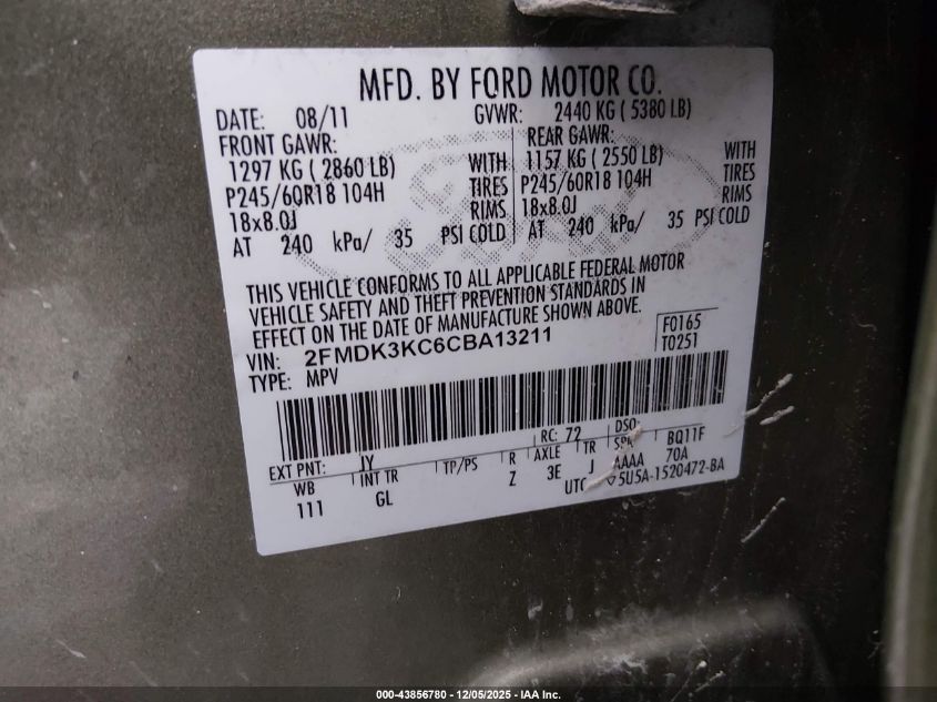 Колір ЗеленийЦиліндри 6Привід Передній привідVIN 2FMDK3KC6CBA13211Стан СтаціонарноУшкодження Передня або задня AutoRIA