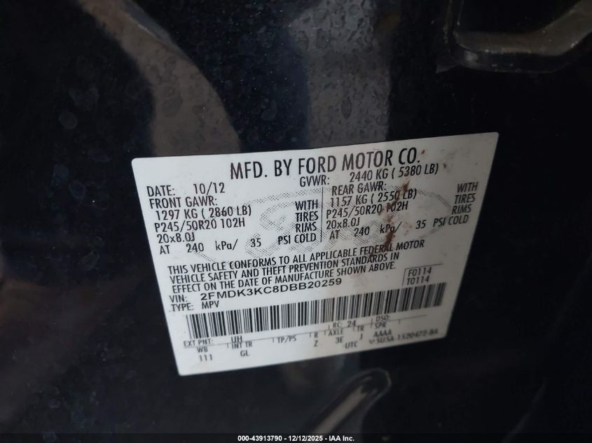 2013 FORD EDGE 2013 року Бензин, 3.5, Передній привід, vin - 2FMDK3KC8DBB20259 з США