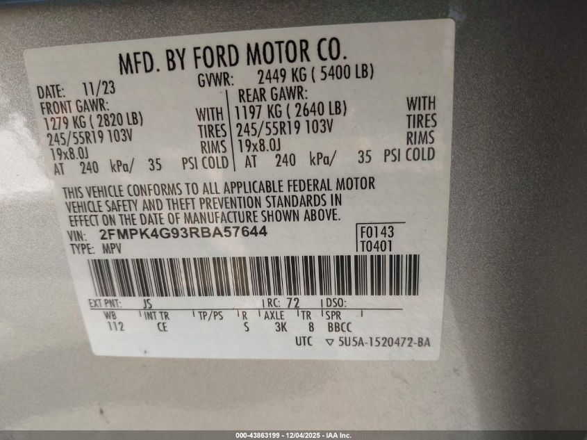 2024 FORD EDGE 2024 року Бензин, 2.0, Повний привід, vin - 2FMPK4G93RBA57644 з США