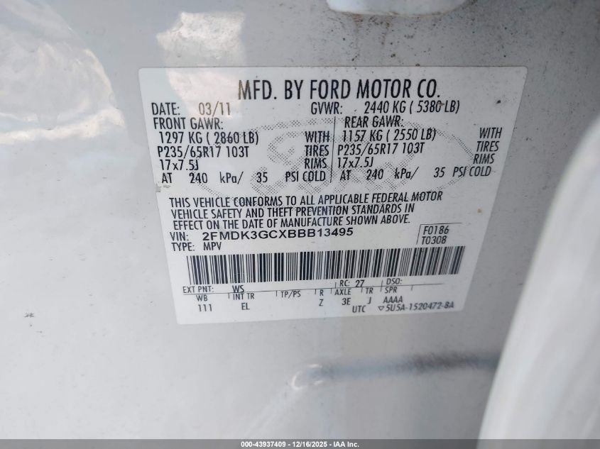 2011 FORD EDGE 2011 року Бензин, 3.5, Передній привід, vin - 2FMDK3GCXBBB13495 з США