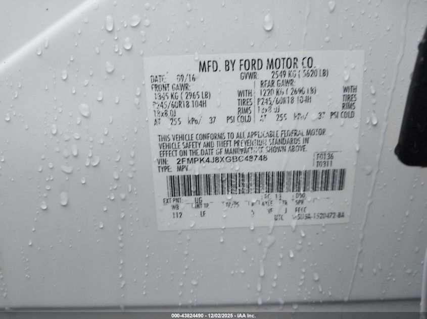 2016 FORD EDGE 2016 року Бензин, 3.5, Повний привід, vin - 2FMPK4J8XGBC48748 з США
