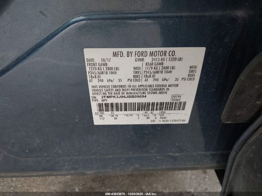 2018 FORD EDGE 2018 року Бензин, 2.0, Передній привід, vin - 2FMPK3J96JBB09694 з США