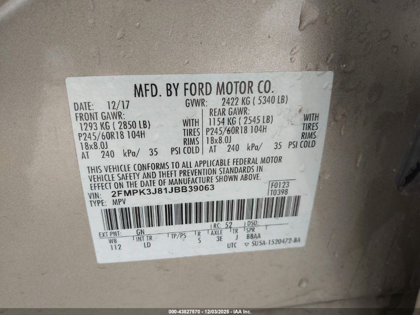 Колір ЗолотийЦиліндри 6Привід Передній привідVIN 2FMPK3J81JBB39063Стан Заводиться та їде (перевірено)Ушкодження Задня AutoRIA