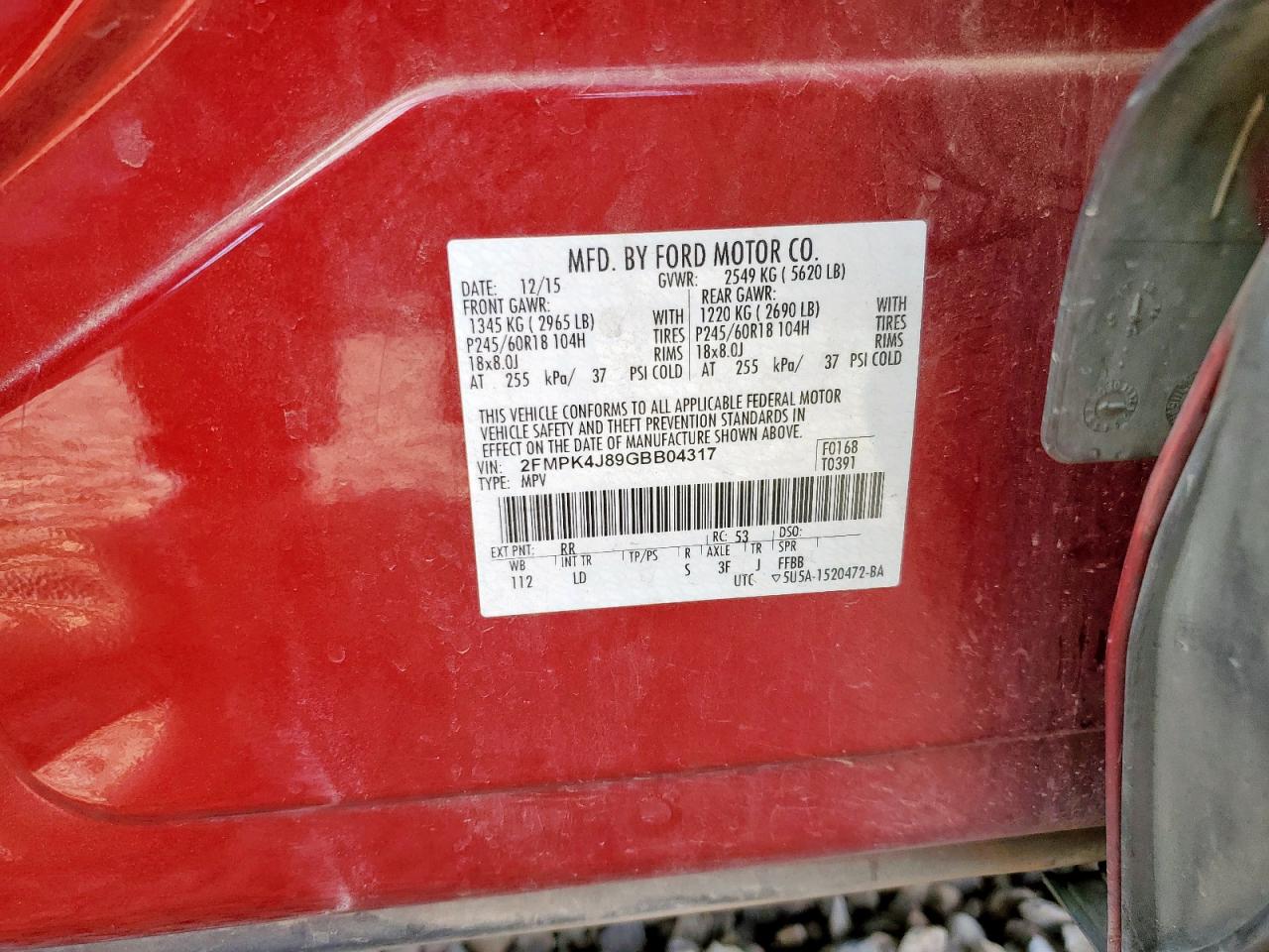 Колір БордовийЦиліндри 6Привід Повний привідVIN 2FMPK4J89GBB04317Стан Заводиться та їде (перевірено)Ушкодження Задня AutoRIA