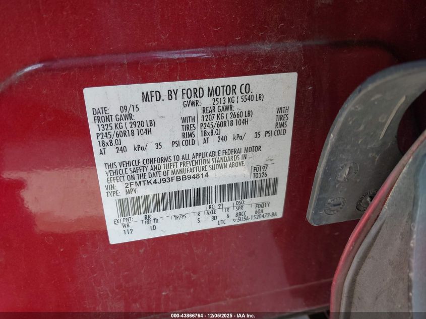 Колір БургундіяЦиліндри 4Привід Повний привідVIN 2FMTK4J93FBB94814Стан Заводиться та їде (перевірено)Ушкодження Передня або задня AutoRIA