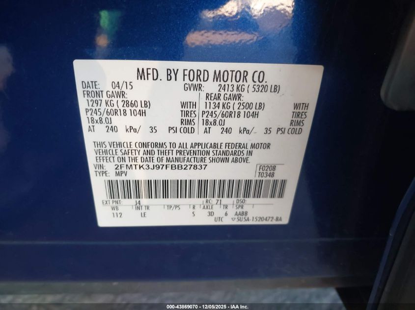 2015 FORD EDGE 2015 року Бензин, 2.0, Передній привід, vin - 2FMTK3J97FBB27837 з США