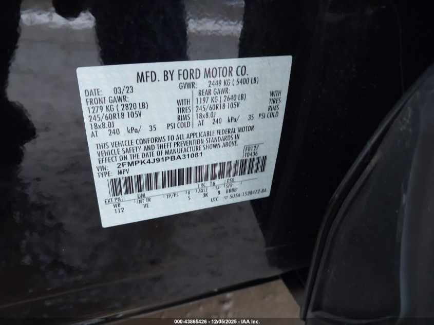 2023 FORD EDGE 2023 року Бензин, 2.0, Повний привід, vin - 2FMPK4J91PBA31081 з США